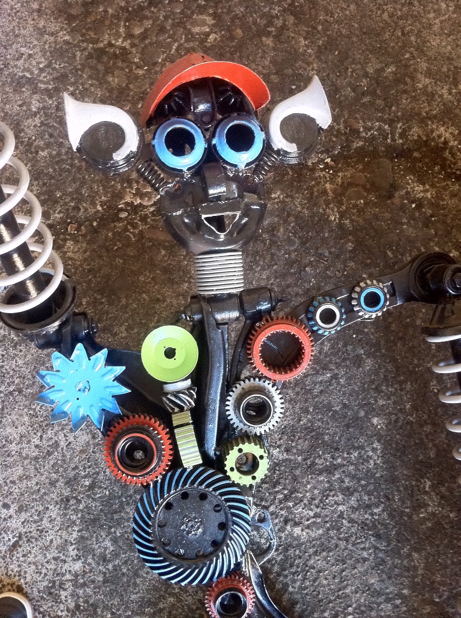 Două garaje, un pod de ridicare, și mascota construită de noi din arcuri și o tobă — stând de strajă la acoperiș din 2019.